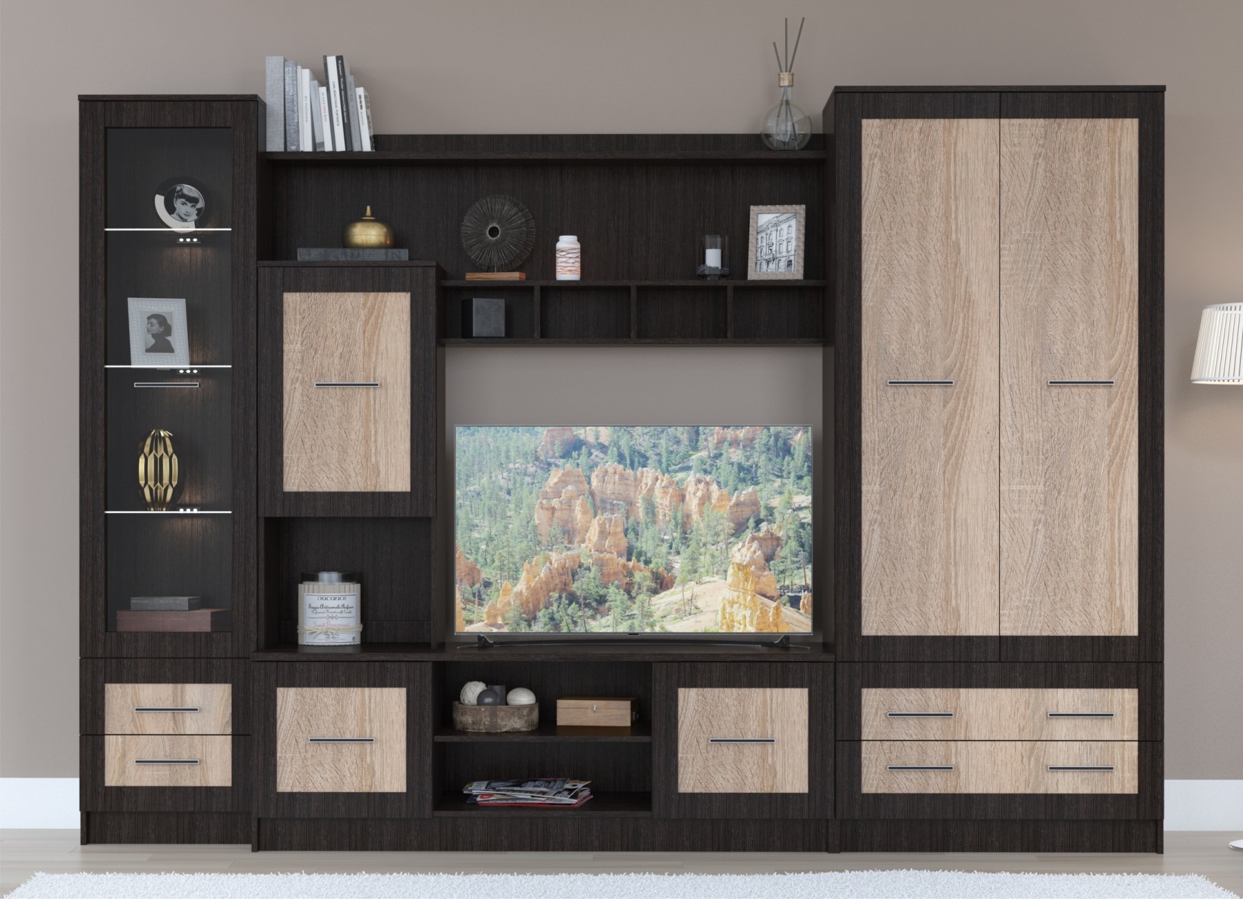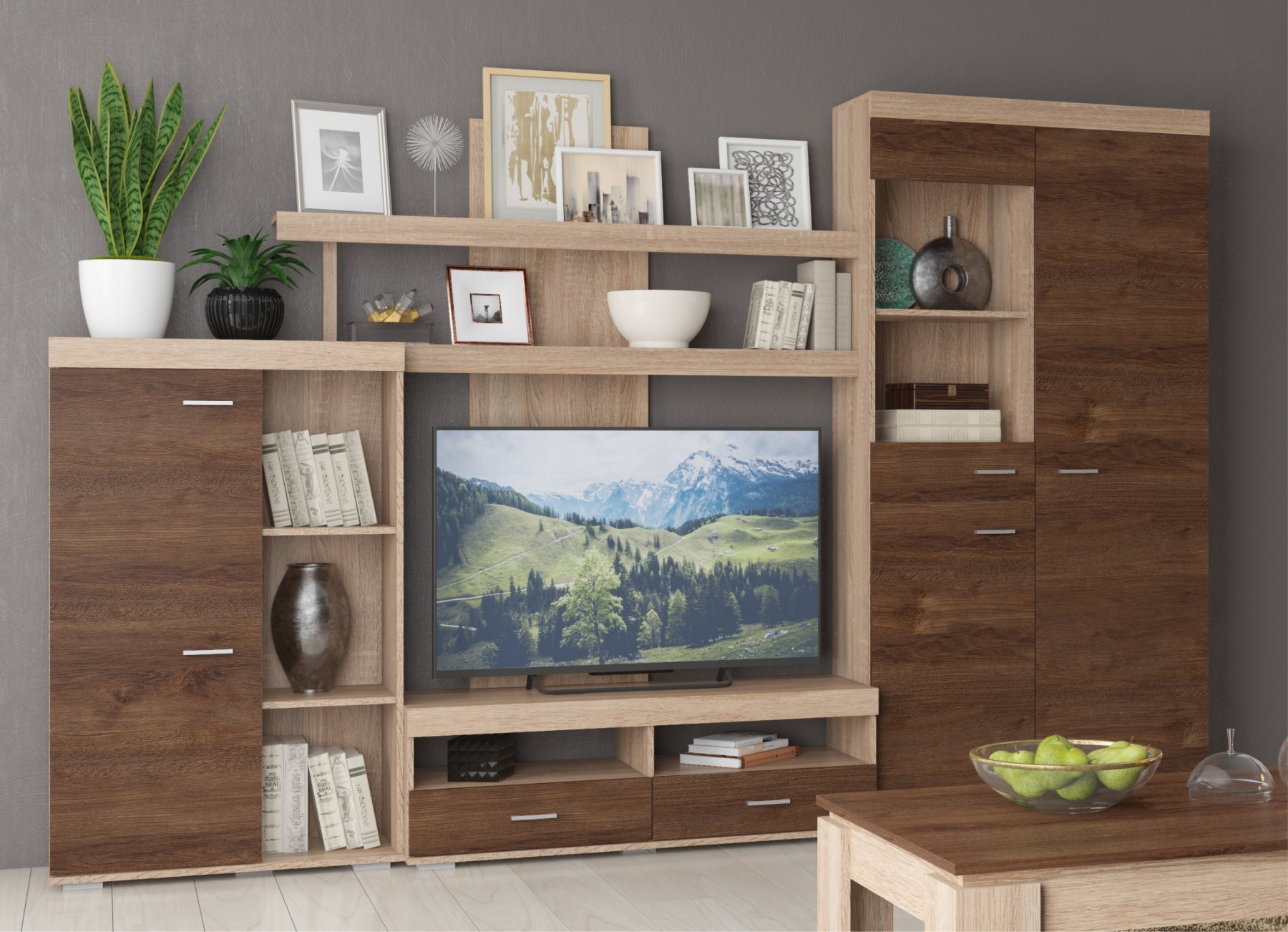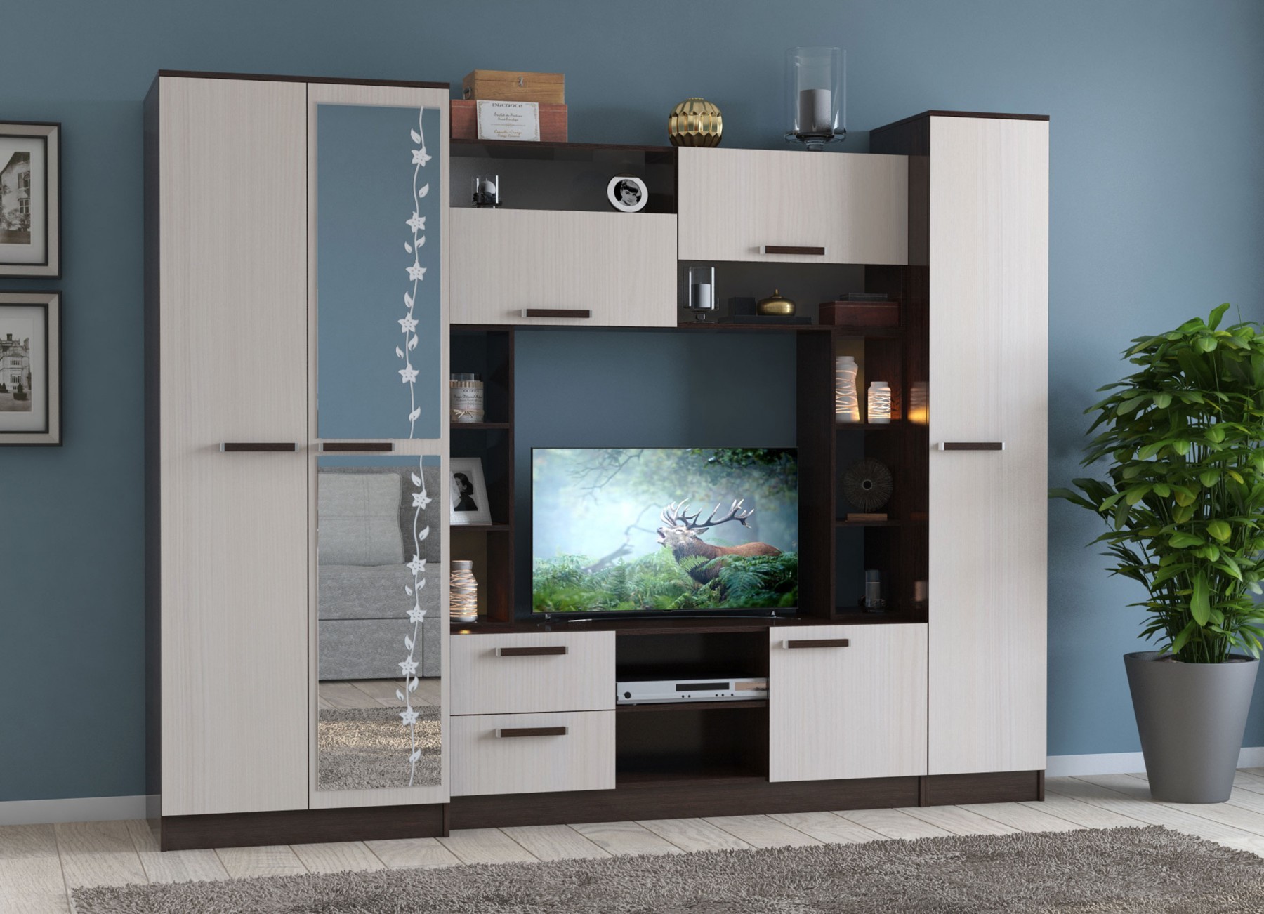 - стенки для залов и больших комнат;